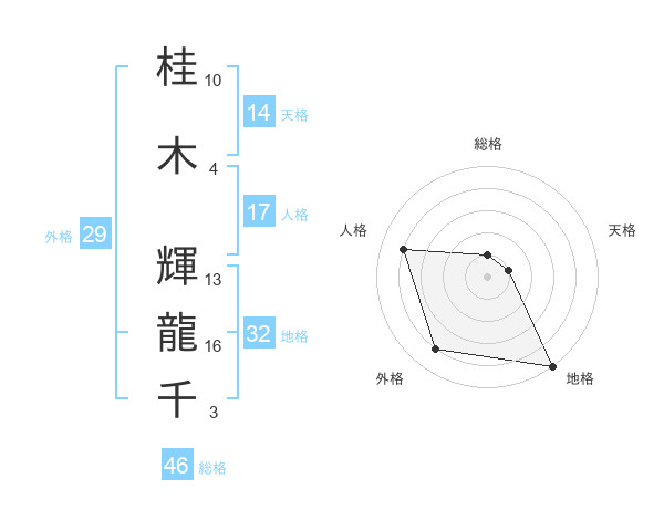 桂木 輝龍千さんの総格は46画の1点!