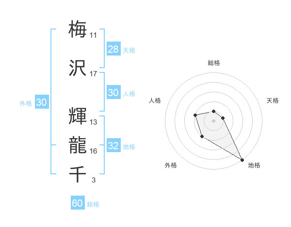 梅沢 輝龍千さんを姓名の画数から五運を鑑定