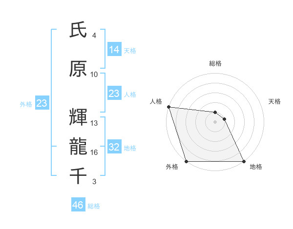 氏原 輝龍千さんの総格は46画の1点!