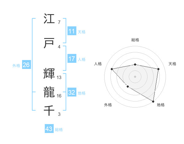 江戸 輝龍千さんを姓名の画数から五運を鑑定