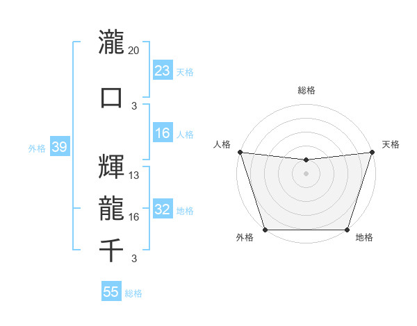 瀧口 輝龍千さんを姓名の画数から五運を鑑定