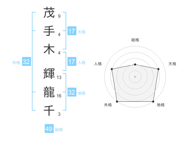 茂手木 輝龍千さんを姓名の画数から五運を鑑定
