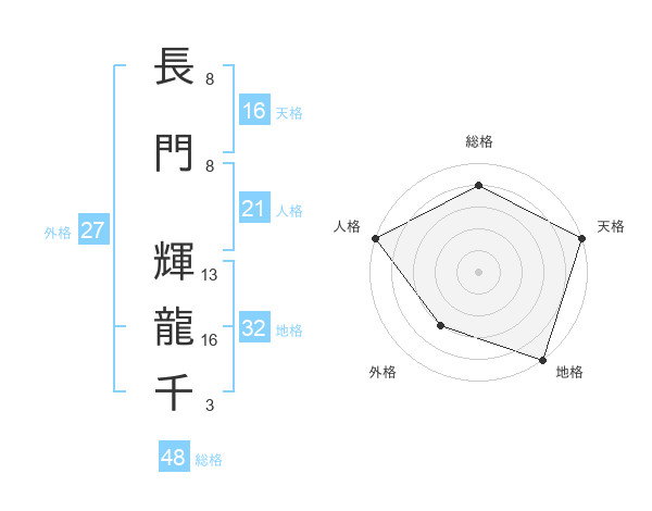 長門 輝龍千さんの総格は48画の4点!