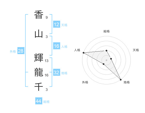 香山 輝龍千さんを姓名の画数から五運を鑑定