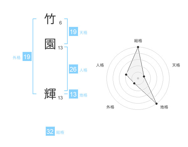 竹園 輝さんの総格は32画の5点!