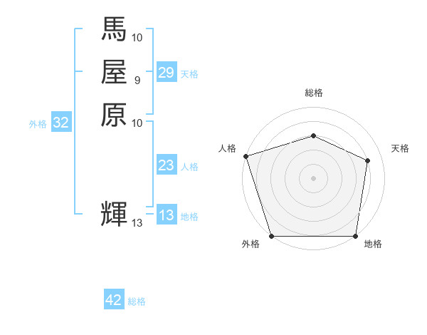 馬屋原 輝さんの外格は32画の5点!