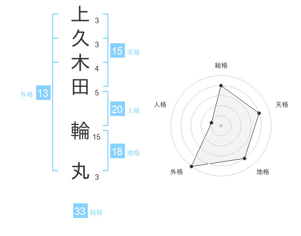 上久木田 輪丸さんを姓名の画数から五運を鑑定