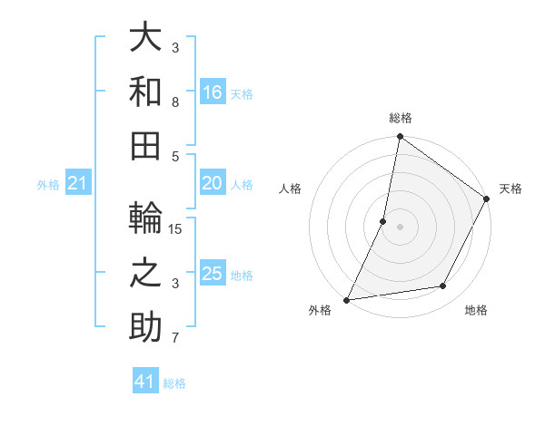 大和田 輪之助さんの総格は41画の5点!