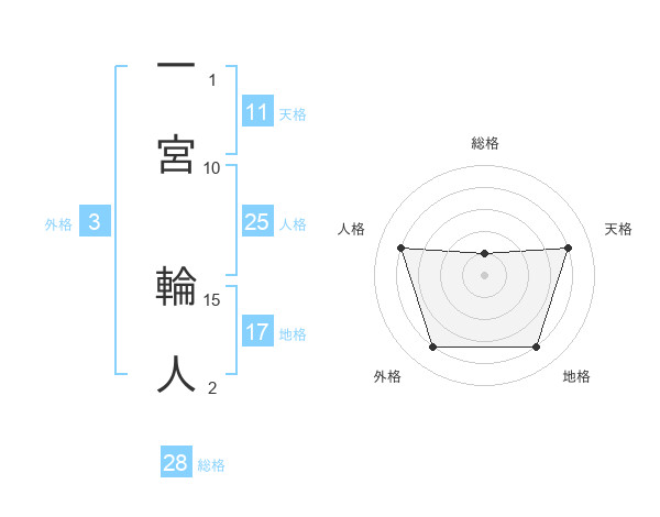 一宮 輪人さんの総格は28画の1点!