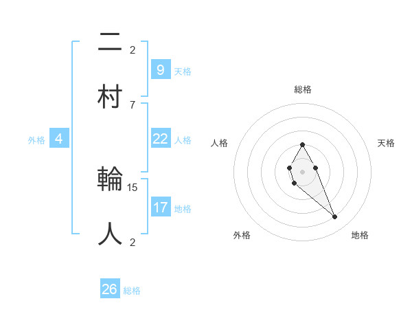 二村 輪人さんの総格は26画の2点!