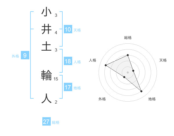 小井土 輪人さんを姓名の画数から五運を鑑定