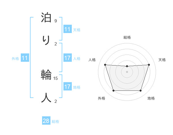 泊り 輪人さんの外格は11画の4点!