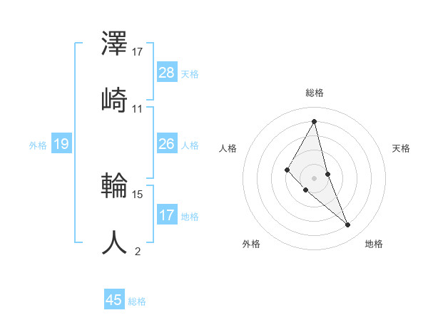 澤崎 輪人さんの総格は45画の4点!