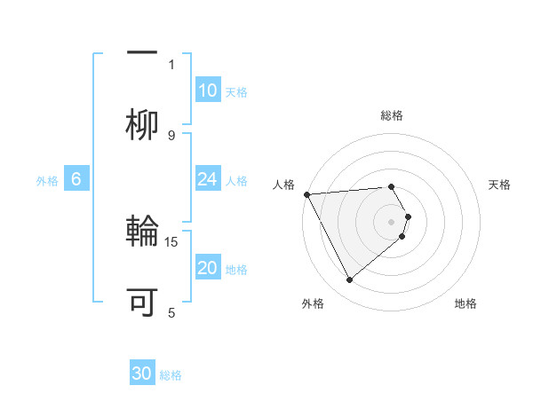 一柳 輪可さんの総格は30画の2点!