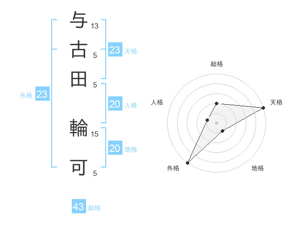 与古田 輪可さんの外格は23画の5点!
