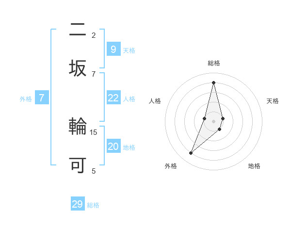 二坂 輪可さんを姓名の画数から五運を鑑定
