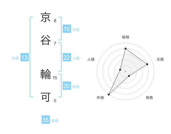 京谷 輪可さんを姓名の画数から五運を鑑定