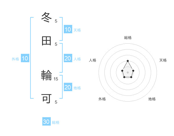 冬田 輪可さんを姓名の画数から五運を鑑定