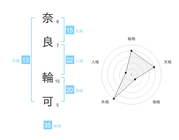 奈良 輪可さんの外格は13画の5点!