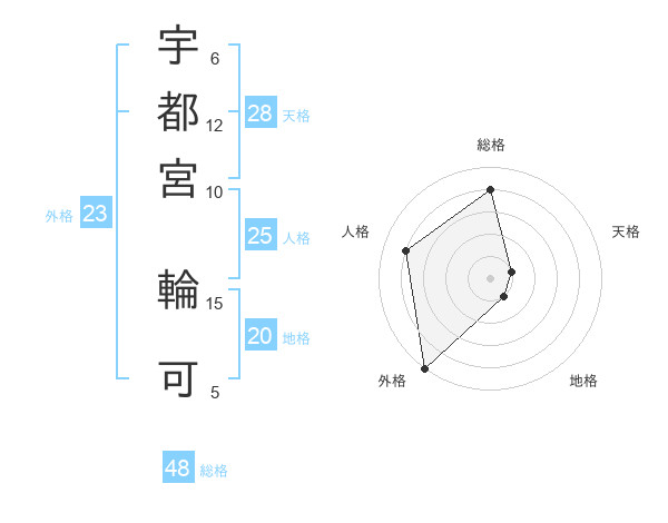 宇都宮 輪可さんを姓名の画数から五運を鑑定