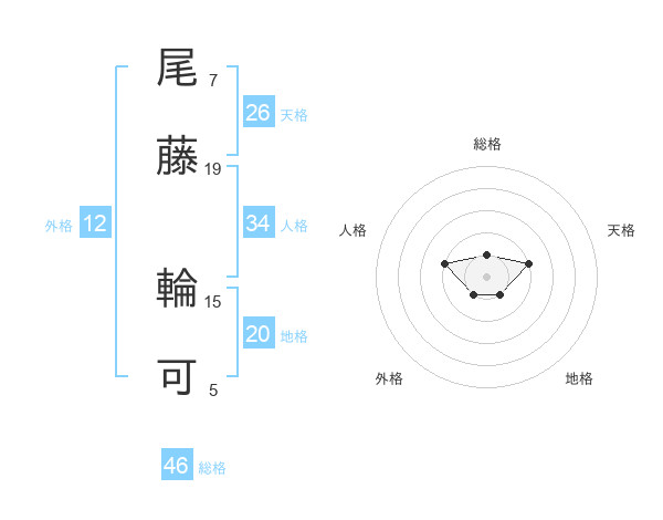 尾藤 輪可さんを姓名の画数から五運を鑑定