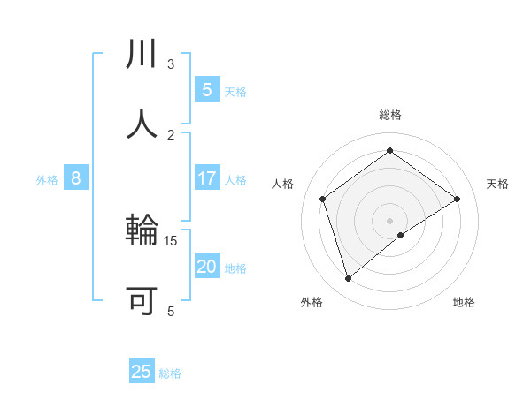川人 輪可さんを姓名の画数から五運を鑑定