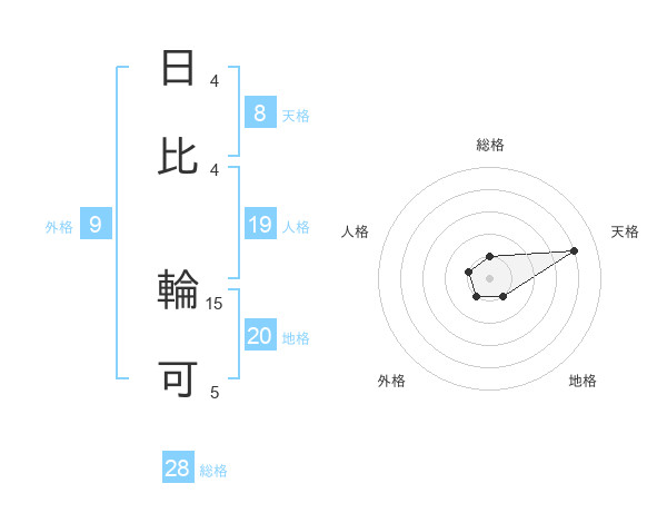 日比 輪可さんの天格は8画の4点!