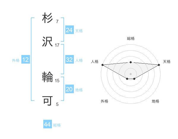 杉沢 輪可さんを姓名の画数から五運を鑑定