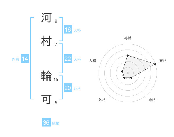 河村 輪可さんの天格は16画の5点!