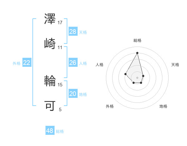 澤崎 輪可さんを姓名の画数から五運を鑑定