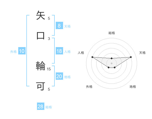 矢口 輪可さんの総格は28画の1点!