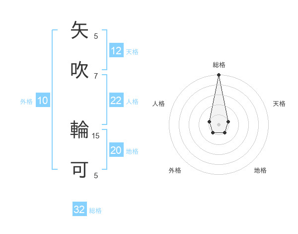 矢吹 輪可さんの総格は32画の5点!