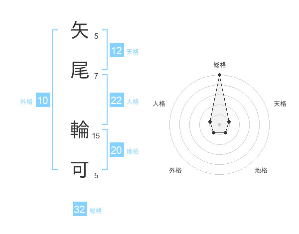 矢尾 輪可さんの総格は32画の5点!