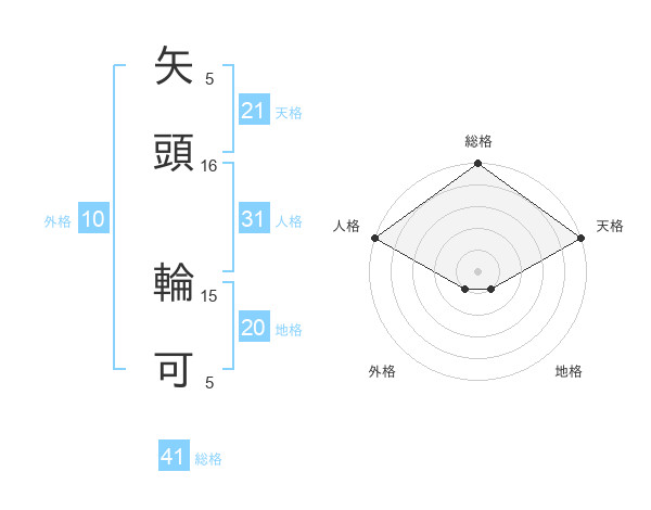矢頭 輪可さんの天格は21画の5点!