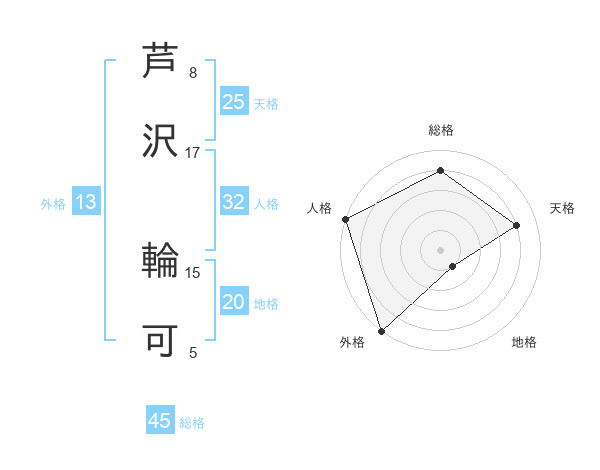 芦沢 輪可さんの総格は45画の4点!