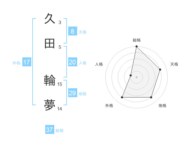 久田 輪夢さんの総格は37画の5点!