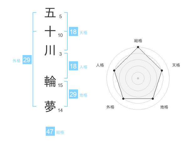 五十川 輪夢さんを姓名の画数から五運を鑑定