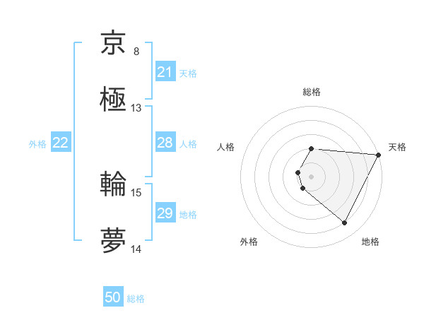 京極 輪夢さんの天格は21画の5点!
