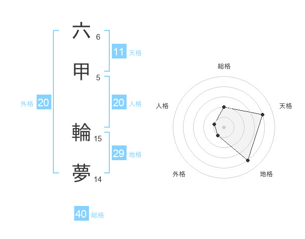 六甲 輪夢さんを姓名の画数から五運を鑑定