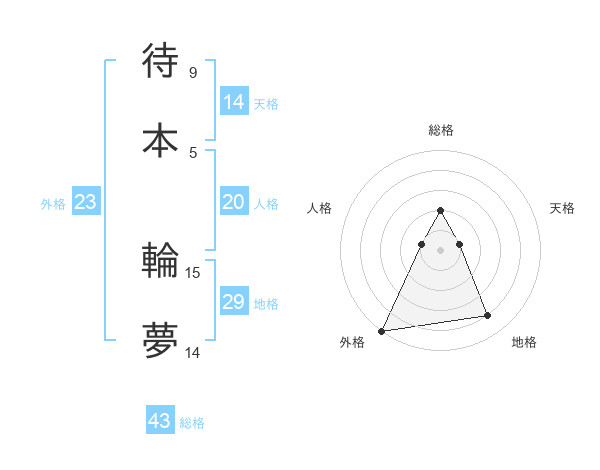 待本 輪夢さんの外格は23画の5点!