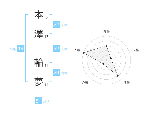 本澤 輪夢さんの総格は51画の3点!