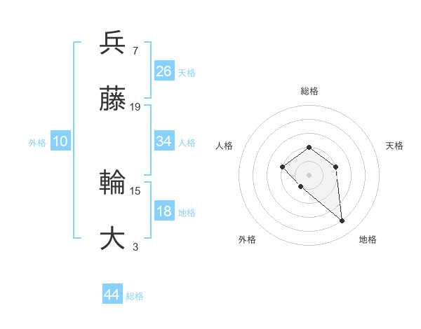 兵藤 輪大さんを姓名の画数から五運を鑑定