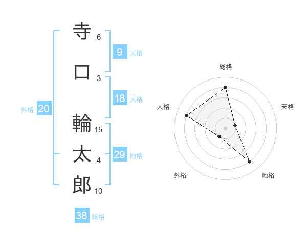 寺口 輪太郎さんの総格は38画の4点!