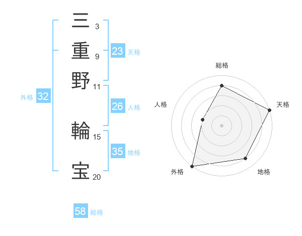 三重野 輪宝さんの外格は32画の5点!