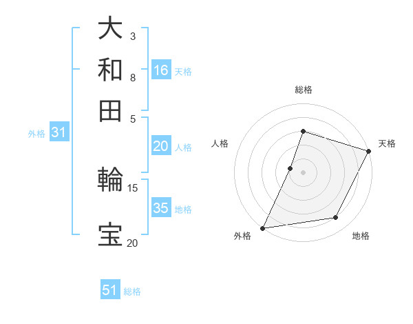 大和田 輪宝さんを姓名の画数から五運を鑑定