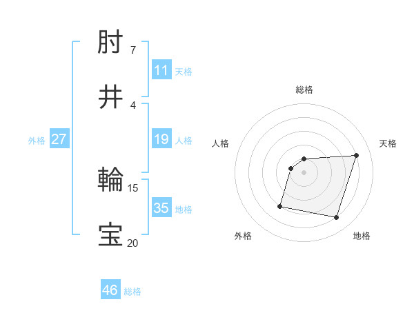 肘井 輪宝さんを姓名の画数から五運を鑑定