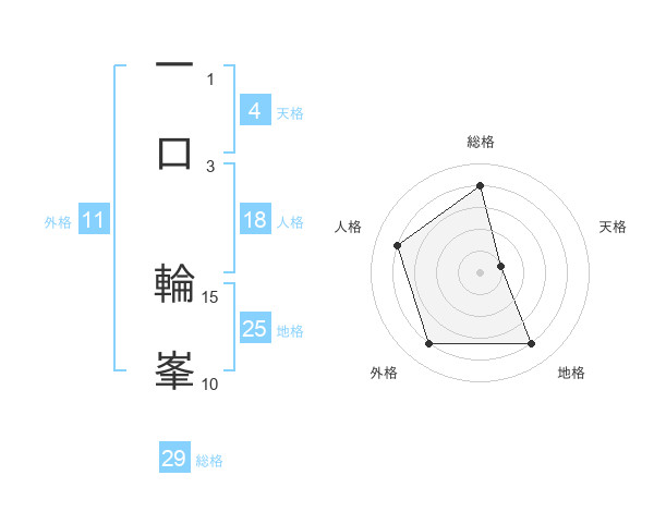 一口 輪峯さんの総格は29画の4点!
