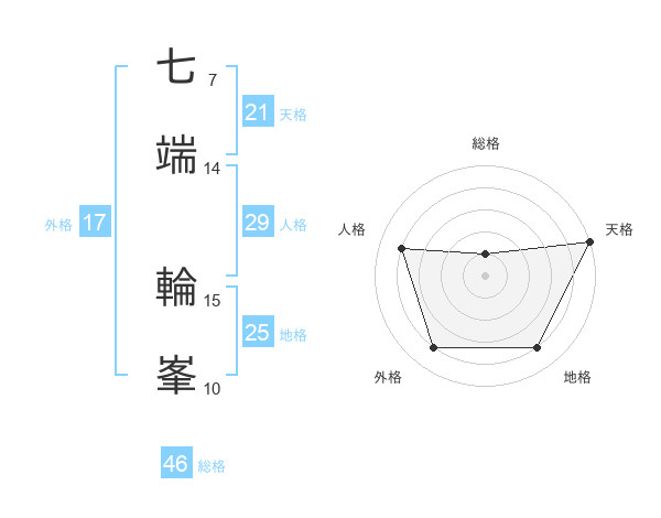 七端 輪峯さんを姓名の画数から五運を鑑定