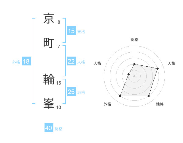 京町 輪峯さんを姓名の画数から五運を鑑定