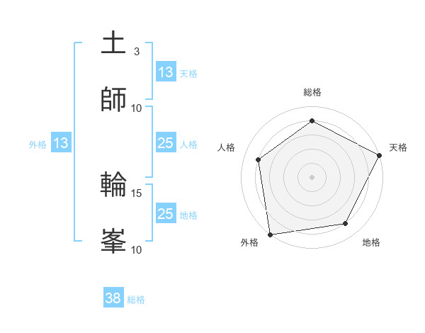 土師 輪峯さんを姓名の画数から五運を鑑定
